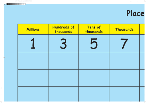 blank place value chart - TeachersPayTeachers Place Value to Hundred Thousands (Chart, Blank Template) by Mrs. Lane 4.9 (24) $1.50 PDF Activity Save your valuable time and print this ready-to-use place value to hundred thousands chart/template. Laminate for durability if desired. *Can also possibly be used for students with modification needs.