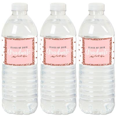 Rose Gold Grad - Graduation Party Water Bottle Sticker Labels - Set of 20 | BigDotOfHappiness.com