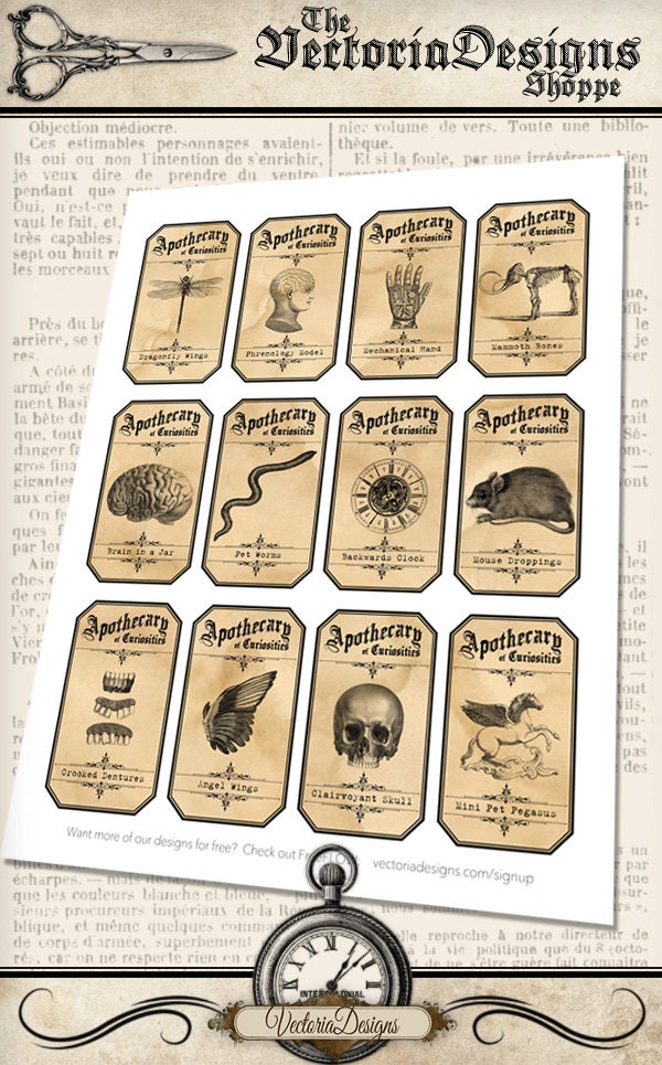 Halloween printable apothecary labels for jars bottles tags and scrapbook embellishment vintage Halloween decor instant download