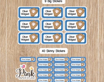 49 Baseball Stickers • 9 Big School Name labels • 40 Skinny Labels • School labels • This belong to stickers • Labels school supplies