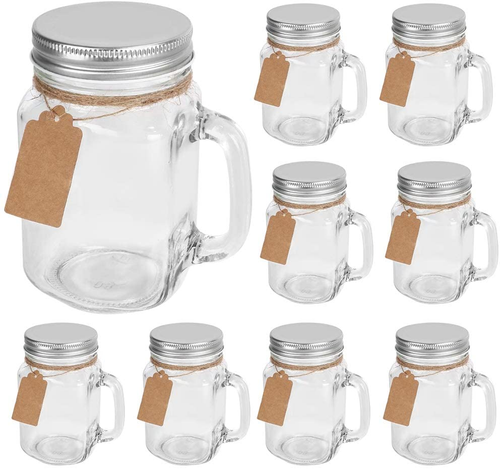 16 oz. Mason Jar Mug - Customglassware.com 16 oz Clear Glass Mason Jar Mug with Handle Low-Cost Heavy Quality Beer Mug ** Lid sold separately Made in the USA. Please note this mason jar mug is smaller than a canning mason jar, which is 32 oz. This custom mason jar mug is 5 1/4 inch tall. You can also order a lid for an additional $0.50 cents each.