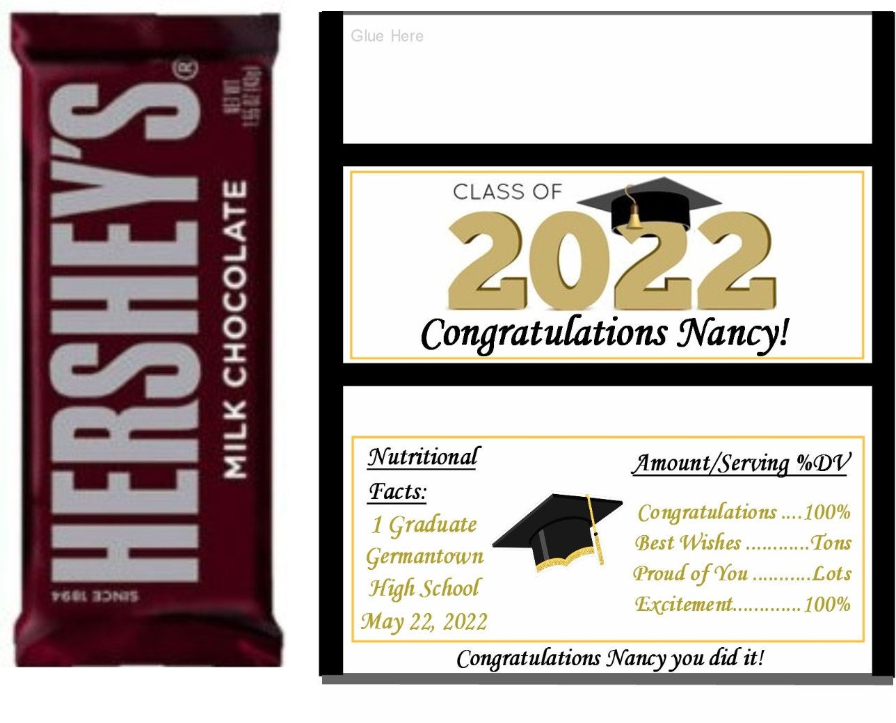 Class of 2022 Graduation, Party Favors, Candy Bar Wrappers, Fits a Chocolate Bar, Personalized (Set of 12)(WG42)