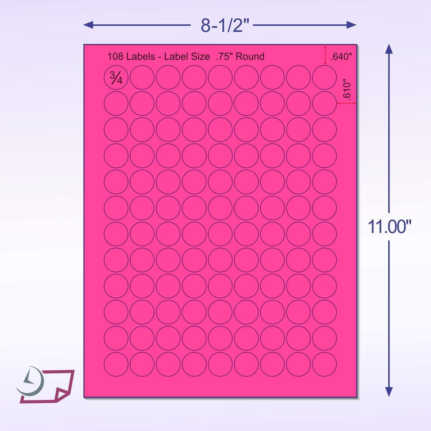 3/4" Round Printable Labels for Laser/Inkjet Printers - Chromalabel - 25 Sheets of White Printable Circle Labels - 108 Labels per Sheet | 2700 Total Labels - Sheet Size: 8-1/2" x 11" (Same as Standard Paper) - Labels are 0.75 inches in diameter (19mm/ 1.9cm) - Made specifically for laser and inkjet printers - Permanent Adhesive sticks well to most surfaces LASER/ INKJET PRINTER-READY LABELS