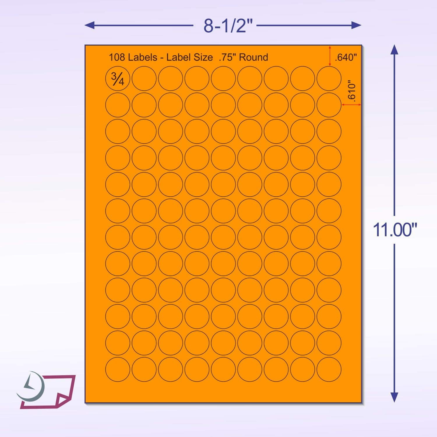 Avery Circle Labels - Round White Matte Stickers - Label Outfitters Inc Each sheet has 108 labels 3/4" . Avery® does not currently offer 0.75" - 3/4" Round Labels. Package of 100 sheets (10,800 labels) of standard white circular labels, 3/4" diameter, with 9 labels across, and 12 labels vertically. The top and bottom Margins are 5/16", and the top and bottom rows of labels should print fine on most printers. Canning label size charts for regular & wide mouth mason jars ... ROUND LABEL SIZES. 1.5 inch (30 labels per sheet) for small 1 oz favor jars lids; 2 inch (20 labels per sheet) for regular mouth jar lids ... Small hearts .75" x .75" (108 labels per sheet) --- for favor jars, honey lids, Kiss candy bottoms; Shop all of our oval canning labels and heart labels. ...